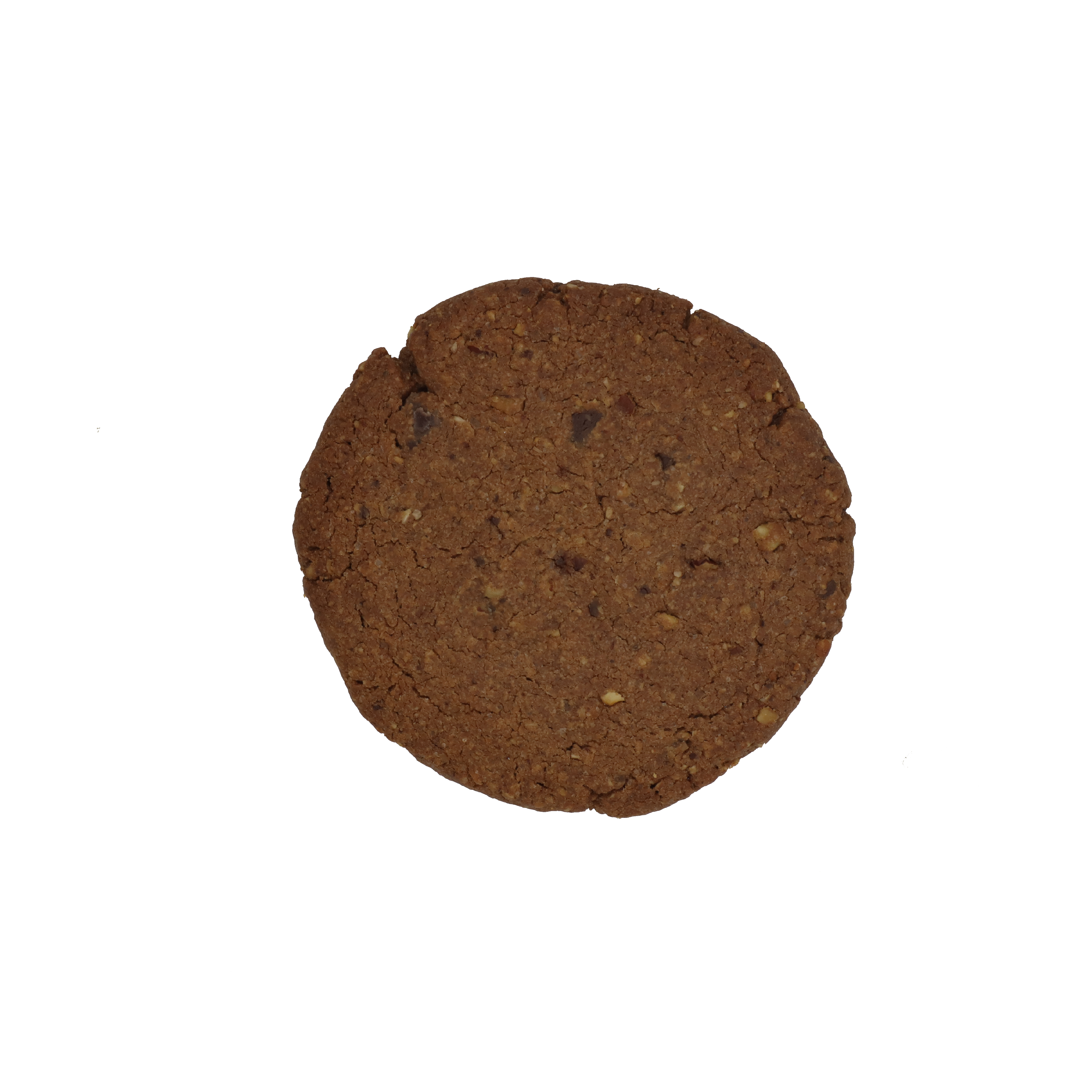 Ingredientes: Harina de Trigo, Chocolate 70% Cacao, Mantequilla, Azúcar y Nuez. Contiene silica y puede llegar a contener trozos de otras semillas.